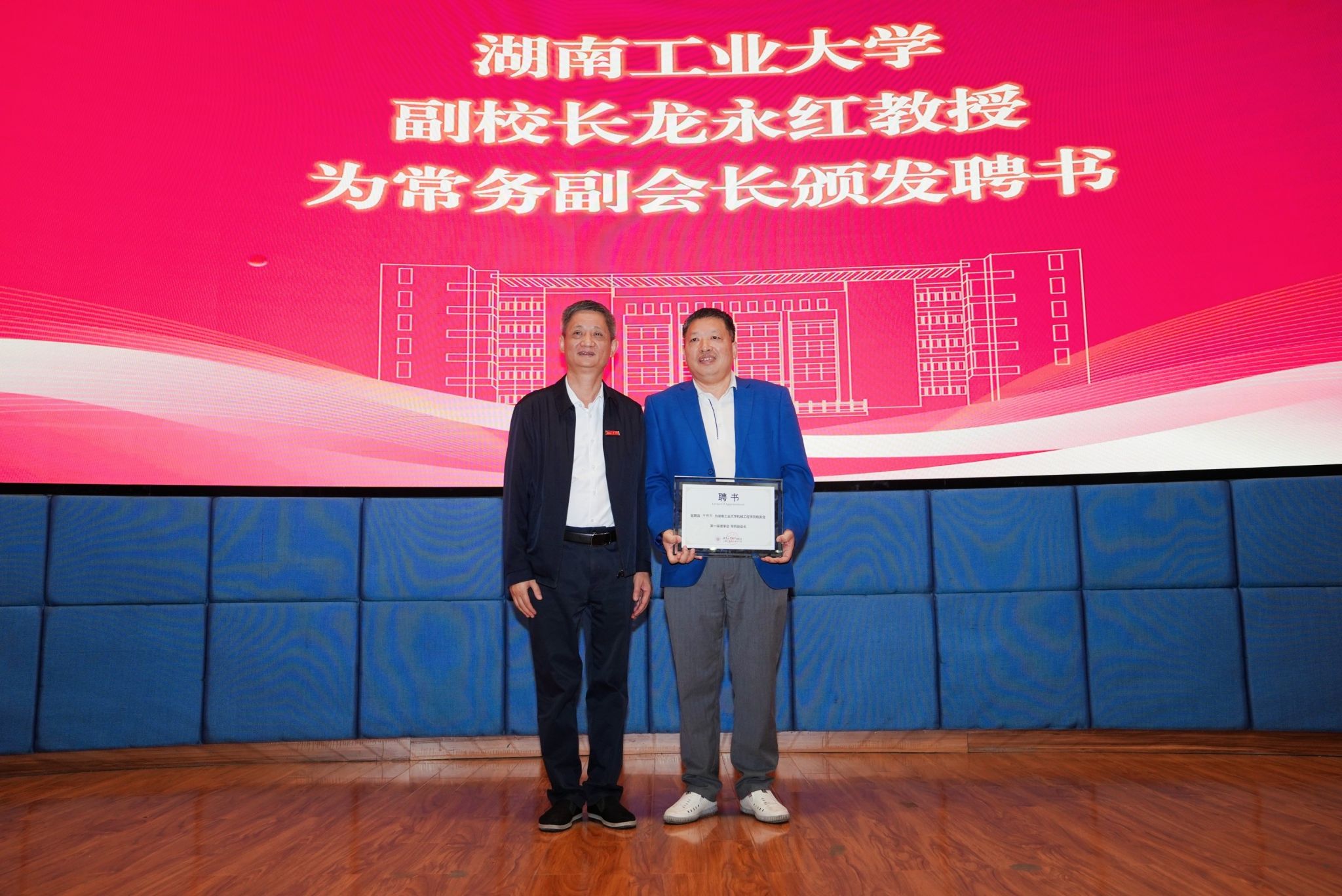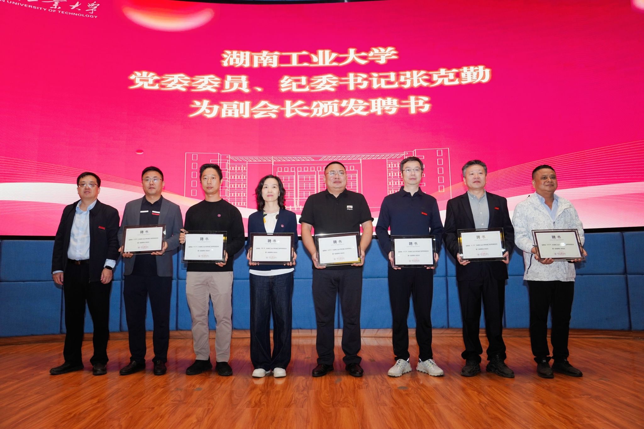 与会领导刘望为会长、顾问颁发聘书;范晓阳为机械工程学院校友会授会旗、会牌,为执行会长颁发聘书;龙永红为常务副会长颁发聘书;张克勤为副会长颁发聘书。